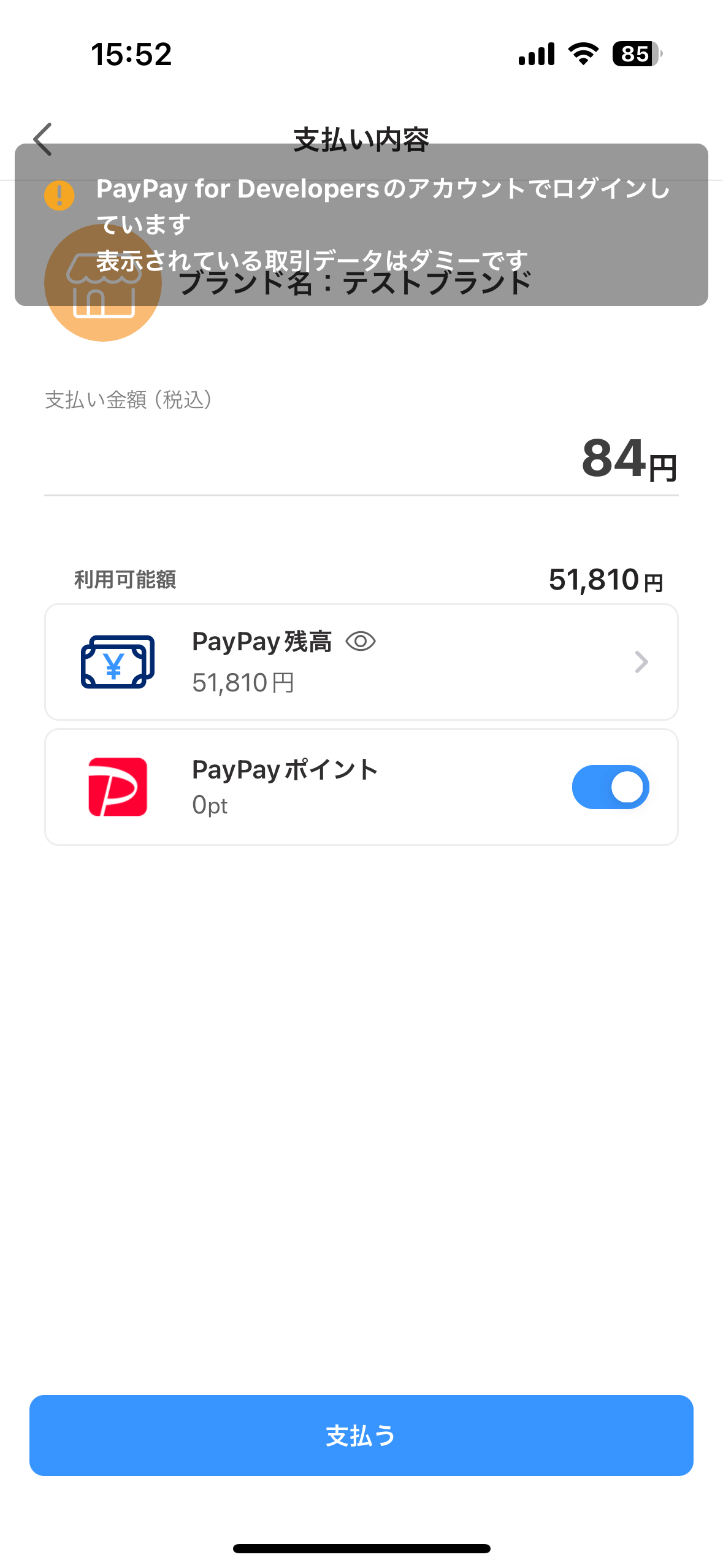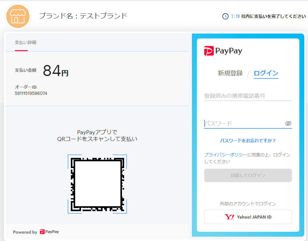 PayPayのブラウザでの決済画面が開きます(下図)。