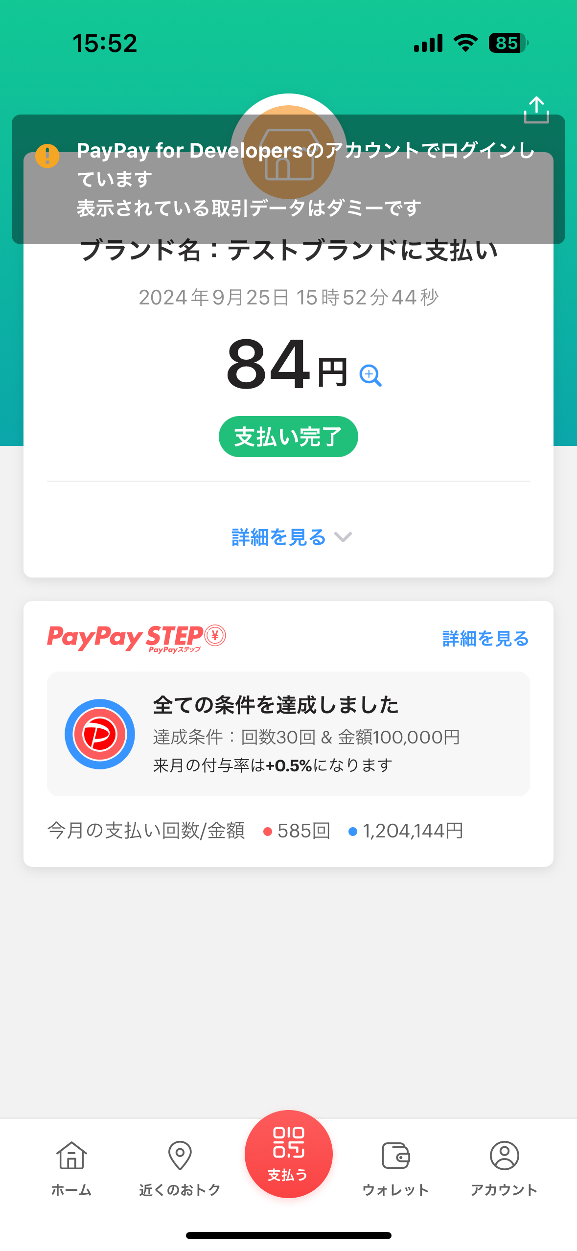 PayPayアプリが自動的に開き、下イメージ図のような画面が開きます。