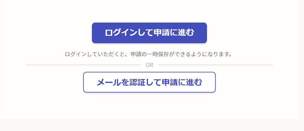 申請ページにある「ログインして申請に進む」をクリックして、次の画面に進みます。