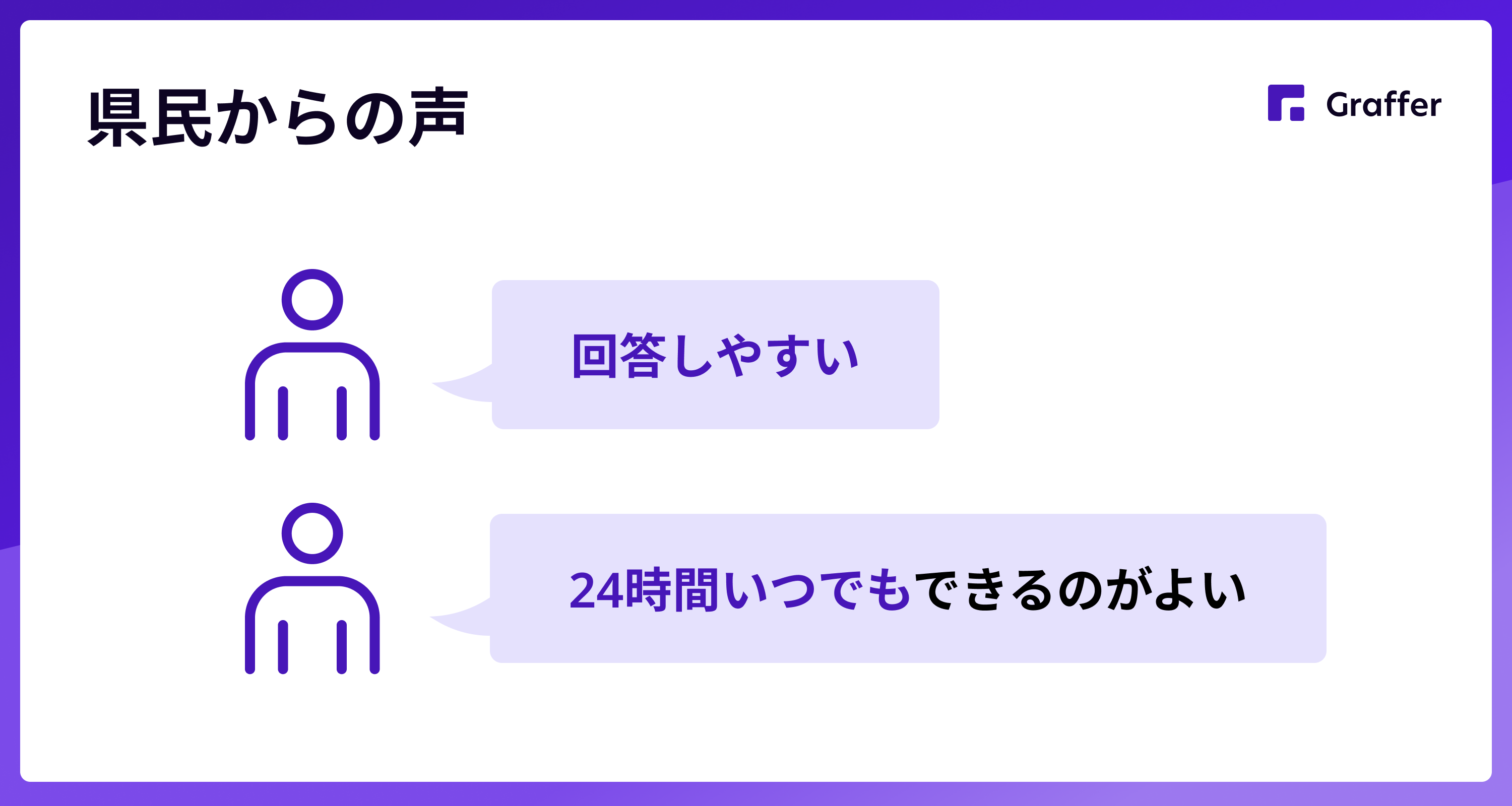 二木:県民からは「回答しやすい」「24時間いつでもできるのがよい」といった反応がありました。アンケートの評価も高く、使い勝手のよいオンライン申請システムとなっているのではないかと考えています。
